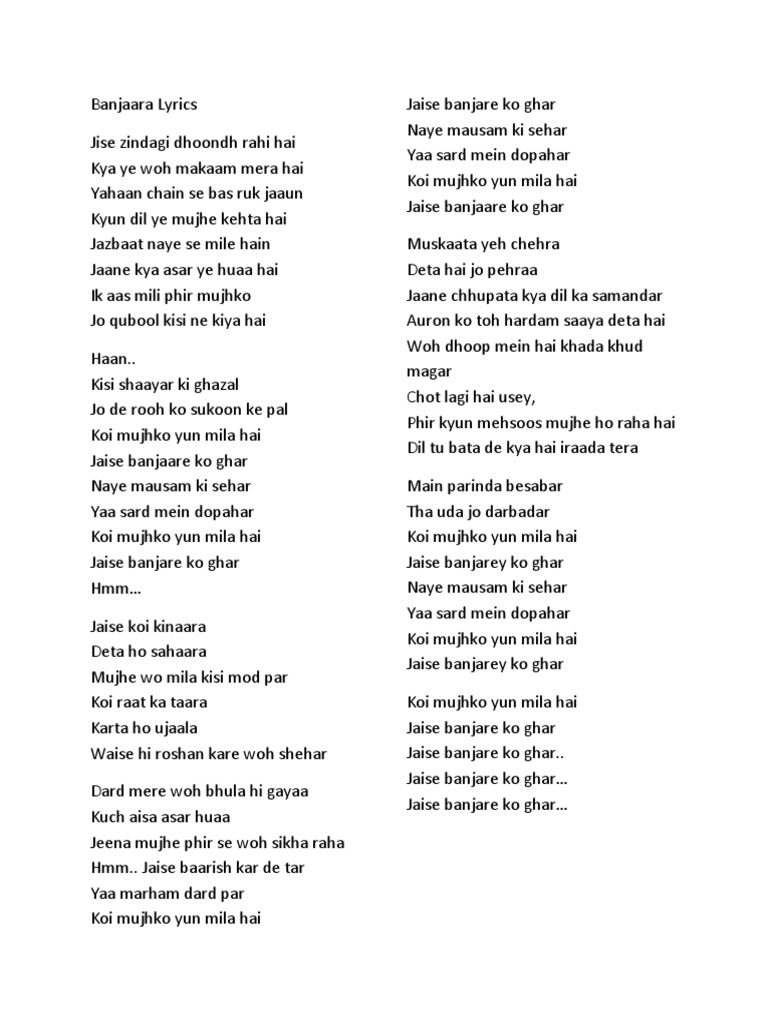 Banjaare Ko Ghar Lyrics / Man ko changdan otaman gul kotarib ham yotalib. Banjaare Ko Ghar Lyrics - C#m jaise banjare ko ghar.