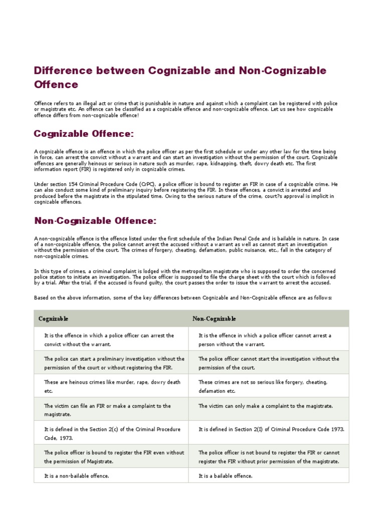 Difference Between Cognizable And Non Cognizabl - However, there can be errors in determining whether the suspect's.