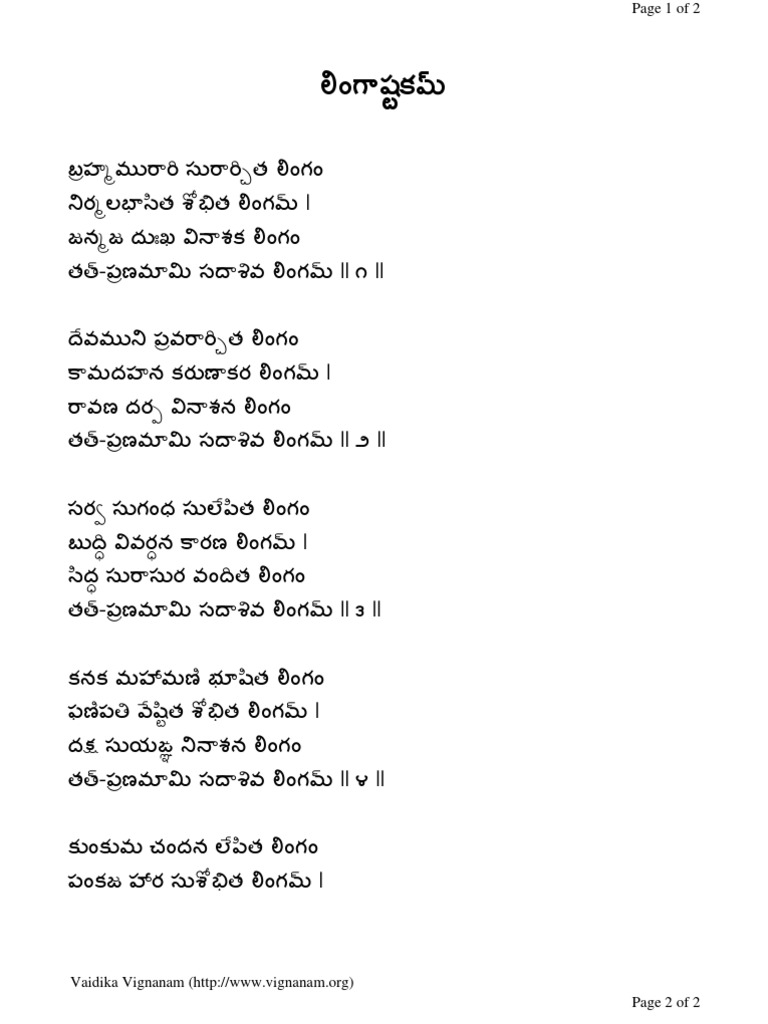 Lingashtakam In Telugu Vaidika Vignanam / Published on stotranidhi.com · updated on జూలై 30, 2020. Lingashtakam In Telugu Vaidika Vignanam : Click to view other data about this site.